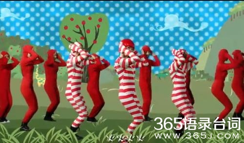 歌曲《小苹果》是“筷子兄弟”还有屈菁菁主演的电影《老男孩之猛龙过江》的宣传曲。在2014年5月29日进行发布。这首歌曲的MV是在韩国进行拍摄制作,而MV的编舞是是红遍了大江南北的鸟叔《江南Style》“骑马舞”的创作者,这两种元素加在一起会产生什么样的奇妙反应呢?接下来,就让365台词语录网小编为您介绍一下《小苹果》