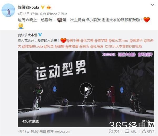 走红之后,陈娅安以四川美女代表身份录制天天向上,而后考入上戏播音主持专业,这几年中她还出演了一部戏的女一号,不过作品知名度并未打响。目前陈娅安加盟快本的消息已经坐实,快本官微在微博中艾特了陈娅安,并放出一张录制节目时她与何炅同框的照片,她本人也表示第一次主持有点小紧张。