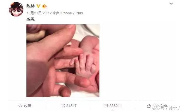 昨天,陈赫发博,配字:感恩。配图:大手握小手。所以,陈赤赤这是当!爹!了!陈赫微博一发,立刻占领微博热搜榜,这速度感觉大众原谅他出轨的他。