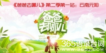 爸爸去哪儿第二季经典台词,这是我们365语录台词网为您精心搜集整理的。我们会为您继续关注爸爸去哪儿第二季经典台词,及时为您补充发布,如果您想要最新最热门的经典台词一定不要错过我们哦!