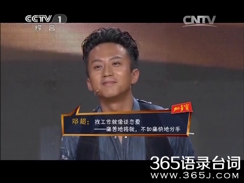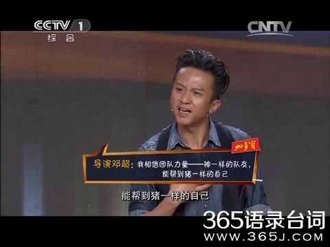 邓超,中国影视男演员、电影导演。2002年主演《少年天子》成名,之后又主演了《幸福像花儿一样》、《甜蜜蜜》、《少年包青天3》等。他自导自演的《分手大师》也即将上映。就是这样一个帅气的男人,他背后有哪些故事呢?本期邓超做客《开讲啦》,主题是:给生活找点快乐。下面365语录台词网站小编就和大家分享邓超开讲啦经典语录。