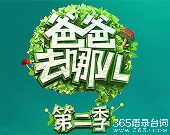 《爸爸去哪儿2》在6月20号开播,由杨威带着儿子杨阳洋,陆毅带着女儿贝儿,吴镇宇带着儿子feynman, 曹格带着儿子Joe、女儿Grace,黄磊带着女儿多多一起参与《爸爸去哪儿2》的拍摄,第一期他们首先到了重庆武隆天坑,在这里会有许多好玩的事情发生,接下来就让365语录台词网为您介绍一下《爸爸去哪儿2》的经典台词。