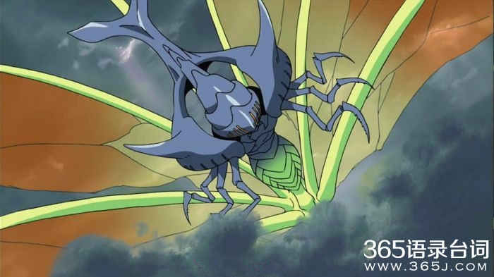 特征:拥有七条尾巴中的六只翅膀和一条尾的甲虫,上半身为蓝色盔甲,下半身是绿色腹部