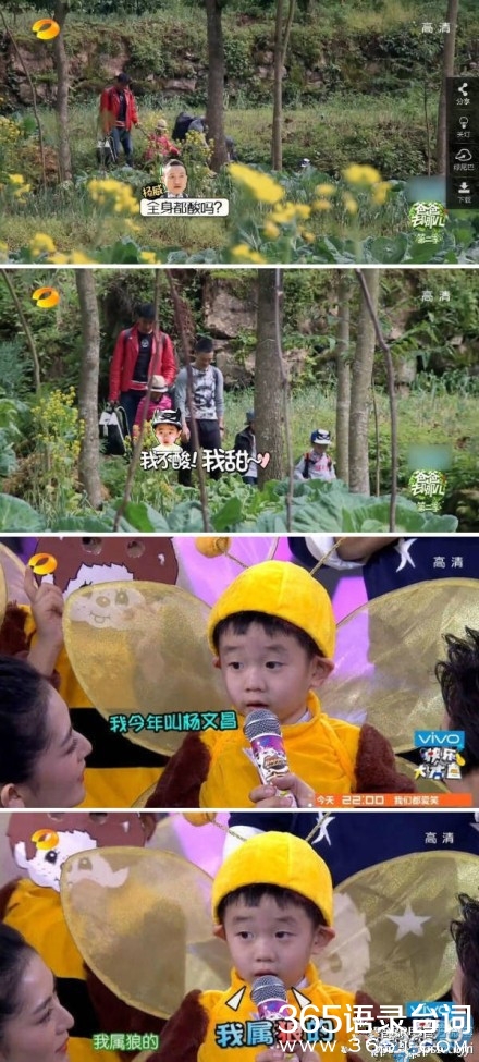 杨阳洋可爱的自我介绍:“我今年叫杨文昌,我属狼。我爸爸姓杨,我妈妈姓杨,我也姓杨,所以我小名叫杨阳洋。”