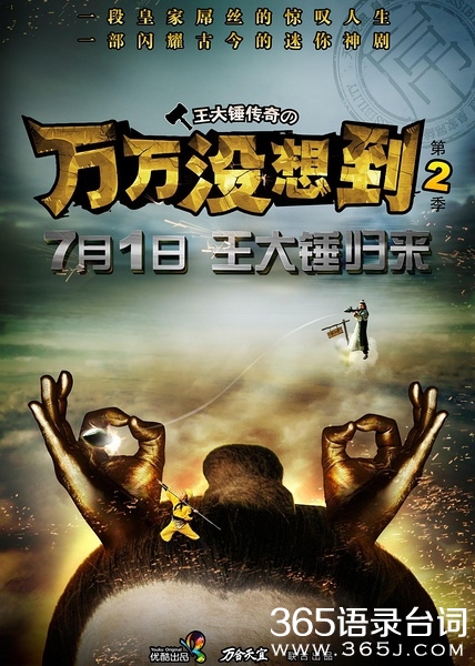 2014年7月1日,《万万没想到》第二季正式上线回归。迷你剧《万万没想到》讲述了一部闪耀古今的迷你神剧,一段皇家屌丝的惊叹人生,以夸张而幽默的方式描绘了屌丝代表王大锤意想不到的传奇故事。因其独树一帜的影片风格、穿越古今的无厘头剧情、吐槽式的台词,一经推出风靡网络。