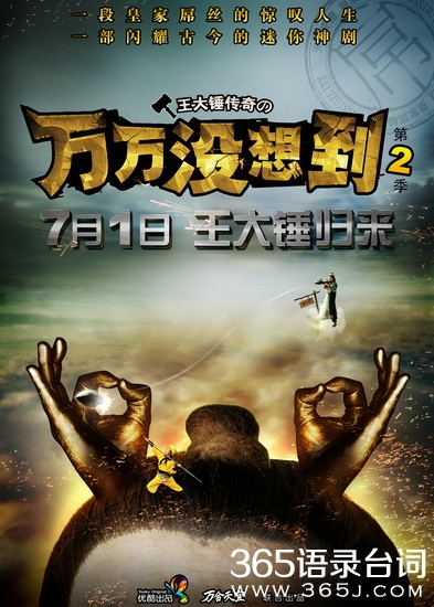 千呼万唤始出来的《万万没想到2》第十集《一块变土豪》您看了吗?这一集的王大锤又是怎演演绎万万没想到的呢?我们整理了演员在《万万没想到2》第十集《一块变土豪》中许多动人心弦的经典台词和语录对白,下面就是365语录台词网的小编为你编辑整理的万万没想到2第十集经典台词的相关内容,就让我们一起来看一下吧!