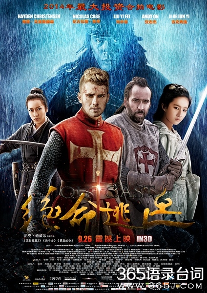 由刘亦菲、海登·克里斯滕森,尼古拉斯凯奇、吉克隽逸主演的电影《绝命逃亡》正在热播,这部电影是中美合拍的一部影片,一位外国公主恋上了一位外国士兵,帅哥美女的跨国之恋,带你领略古老年代的战争爱情。下面365语录台词网为您介绍一下《绝命逃亡》影评:帅哥美女的跨国之恋.
