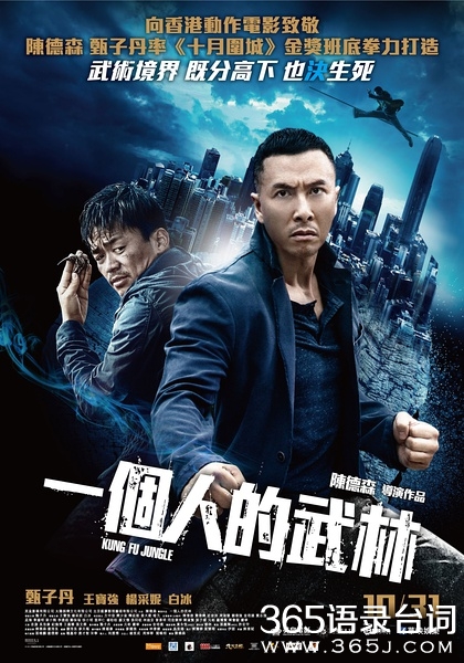 电影《一个人的武林》在2014年10月31日将与大家见面,这部电影是由获得金像奖最佳导演奖的陈德森执导,在电影中,王宝强一改往日的呆萌形象,上演冷血杀手封于修,甄子丹则出演戴罪立功的夏侯武,两位功夫演员究竟能带给大家怎样精彩剧情呢?王宝强和甄子丹在饰演各自的角色中有哪些经典台词呢?电影一个人的武林有哪些精彩剧情和语录台词?下面365语录台词网为您介绍一下一个人的武林经典台词和剧情。