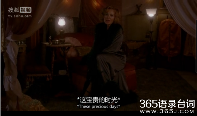 在美国恐怖故事第4季第6集中,兰姨饰演的艾莎在生日前夕与马戏团的畸形人闹了矛盾,她在帐篷里随着唱片翻唱了一首经典歌曲《September Song 》,“These precious days,I'll spend with you”这些宝贵的时光,我将与你一起度过。下面365语录台词网站小编就和大家一起分享兰姨演唱的这首好听插曲。