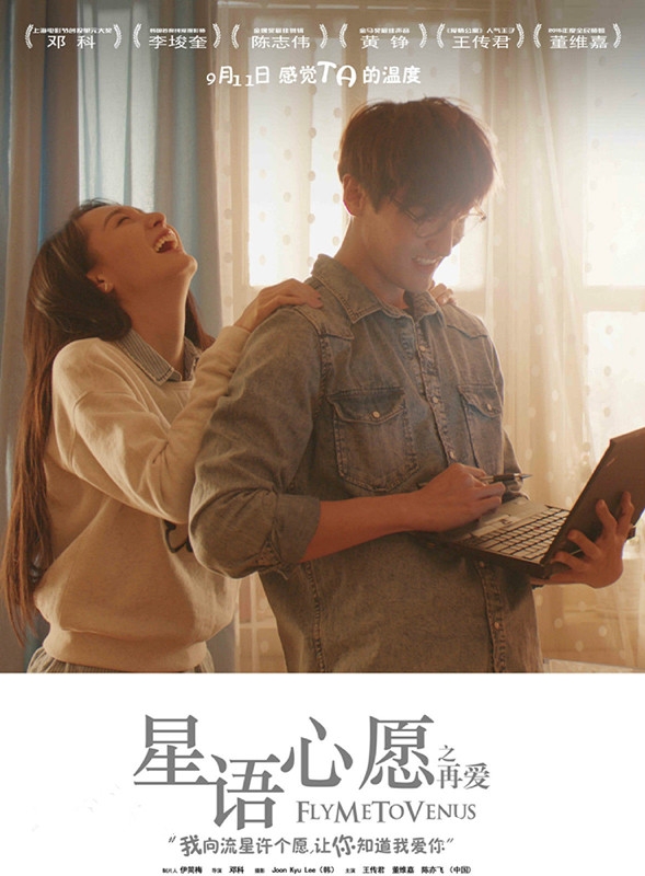 《星语心愿之再爱》是由北京橙天嘉禾影视制作有限公司出品,由邓科执导,王传君、董维嘉、陈亦飞领衔主演的爱情片。影片于2015年9月11日在中国上映。该片讲述的是一位程序员用生命为异地恋的女友编写了一段程序,却在程序完成时不幸去世,几年之后这套程序竟与女友演绎了一段科幻的人鬼情未了旷世虐恋的故事。