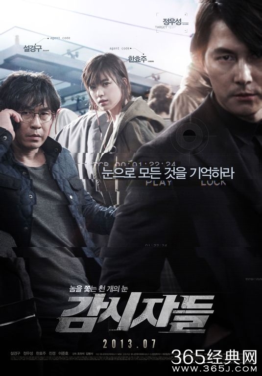 《监视者们》翻拍自香港电影《跟踪》,是由赵义硕,金秉瑞联合执导,薛景求,郑雨盛,韩孝珠,李俊昊等主演的动作剧情片。该片描写了隐蔽真实身份的监视专家们与每次受到危机四伏的追踪却都能幸运逃脱的秘密犯罪者之间惊心动魄的对决。以监视特定对象的警察内部特殊组织部门监视班为背景,讲述特殊犯罪科监视班队员与银行盗窃团伙之间发生的故事。于2013年7月3日在韩国上映,票房突破550万,并受邀参展多伦多国际电影节。2014年9月16日在中国大陆上映,并更名为《绝密跟踪》。