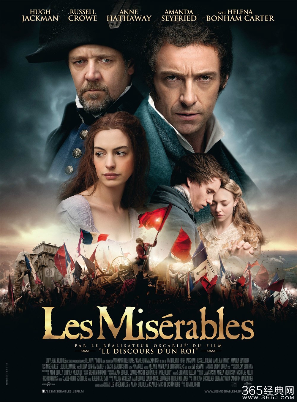 《悲惨世界》是在纪念法国著名作家雨果诞辰210周年暨《悲惨世界》出版150周年之际,由汤姆·霍伯执导的一部电影,由休·杰克曼、罗素·克劳、安妮·海瑟薇、阿曼达·塞弗里德等主演。本片的前身是同名音乐剧,根据法国大文豪维克多·雨果1862年发表的同名长篇小说改编。影片故事发生在19世纪的法国,穷苦农民冉阿让(休·杰克曼饰)因偷面包而入狱多年,终获假释却再次无视法律,不得不开始逃亡。被收留他的主教感化后,冉阿让决心洗心革面,开始新生活。十年后他成为成功的商人并当上市长,却一直受到铁面警官贾维尔(拉塞尔·克劳饰)锲而不舍地追捕。2013年2月28日,电影《悲惨世界》在中国内地公映。