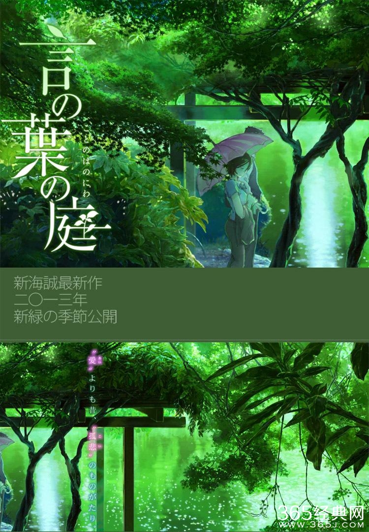 以上就是365经典网为您介绍的《言叶之庭》,新海诚对动画质感的苛求,营造了一场美到极致的电影,在简短的46分钟时长里,电影的每一帧都是那么的无可挑剔,而在这个简单的爱情故事中,其所赋予的距离感,又将一种微妙的感情隐晦的表达而出,契合出色的动画质感给人以一种恬静的艺术表达,或许也只有新海诚的动画电影才能如此娴熟的把控,令本年龄悬殊的爱恋居然蒙上了一层迷人的基色。更多精彩尽在365经典网!