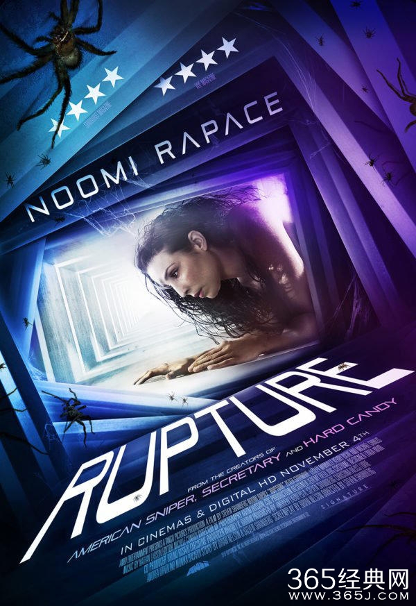 《破裂》讲述的是一位单身母亲被一个神秘组织绑架,并在她身上做实验,她想方设法逃跑并要找出为何自己被选中的原因。这支片段正好演绎的就是拉佩斯被绑架的过程:在公路上,她的车胎似乎被扎破,后方一辆房车上下来一个男子试图帮助她换胎,远处还有一辆小轿车上一男一女正注视着这一切。房车上的另一位男子下车抽烟,突然说了声“跑”,两人就将拉佩斯电晕并用胶带封口。新款的海报则科幻感十足,拉佩斯赤裸着身体似乎在通风管道中爬行,周围还有很多蜘蛛让人毛骨悚然。