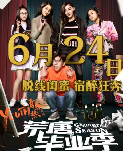 由世纪百年影业、时代影业、七娱乐影业、映美传媒出品,正晖映美、海和朋友们联合出品,映美传媒独家宣发,林丹丹、温心、耿一帆、苏梦芸、王振宇出演的青春荒诞喜剧电影《荒唐毕业季》于2017年6月24日在爱奇艺独家上线。