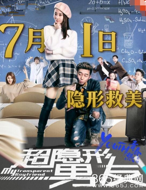 从片方发布的海报来看,以教室作为画面背景,黑板上密布的数理公式、一排一排的学生座位、分布画面两边的书本和音响,都充分说明了影片是一个发生在校园里的故事。女主一身清纯装扮,站在画面中央,散发着浓浓的女神气息,而男主蹲在女主的身边,紧紧抱着女主的腿不肯放手,表现了作为隐形侠的男主对自己心爱女神的穷追不舍,不过女主似乎并没有感觉到这一切,两人视线的错位揭示了男主“隐形”的设定,尽管男主一直陪在女主的身边,但她并不能看见他。在画面的后方,教授和学生分列不同位置,摆弄着各种搞怪的姿势,昭示了各自不同的性格,也把影片中无处不在的喜感展露无遗。