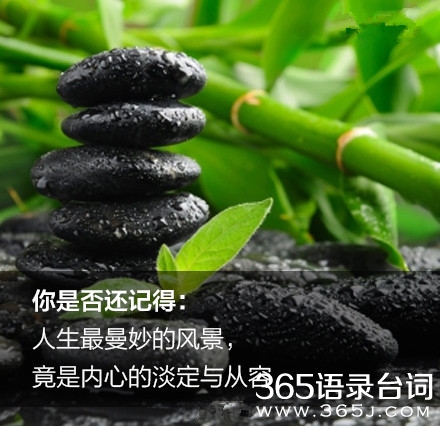 你是否还记得:人生最曼妙的风景,竟是内心的淡定与从容?忙碌一周,是时候放慢脚步,品味生活了。不管阳光和煦还是大雨倾盆,生活美不美,取决于你对它的热爱程度。别因急于抵达目的地而错过了流年里温暖的人和物。时光,浓淡相宜;人心,远近相安,和亲爱的自己说一句你好,我很好,这就是最好的生活。365语录台词网,为你提供人生的感悟,为你的人生导航。