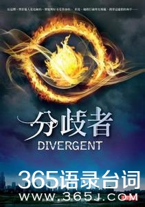 如果世界按照所有最美的特质划归五派,无私,无畏,诚实,友好,博学,在这样一个世界里,还会不会有杀戮,争端,夺权,暴乱?答案你知道。因为丑恶从未消失,它只是被深深地隐藏起来,妄图在某一天爆发出来,冲毁这世界。在本书看似平静的开头后面,潜藏着令人惊讶的奇曲过程,我们所有人化身16岁少女“碧翠丝”,跟着她从安宁平和的无私派生活突然坠入分歧者的危境,突入无畏派基地,历经新生训练的血雨腥风,变身强悍理智美貌加身的“翠丝”,经历一场未知结局却至死不渝的恋爱,再跟着她走上解密分歧者之路,完成一次向死而生的蜕变。如果您想要关注更多关于《分歧者》的最新消息,请您关注365语录台词网。