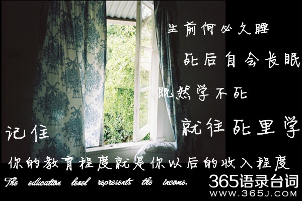 11.人生总要有所目标,有所其知道自己为什么而努力,为什么而拼搏,其实结果不重要,重要的是过程,没有侥幸的成功,只有加倍的努力、每一发奋努力的背后,必有加倍的赏赐。奋斗不是心绪来潮,奋斗不是一时努力,奋斗的背后有很多东西,有坚韧,有忍耐,有信心,有顽强,有拼搏,还有尝试。