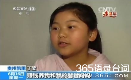 板凳姑娘丁莹:用手撑起明天,365语录台词把这篇文章分享给大家。2014年6月16日至18日,中央电视台新闻频道《朝闻天下》和《新闻直播间》“走基层”栏目连续三集播出《凯里板凳姑娘丁莹:用手撑起明天》的报道,反映凯里市八小学生丁莹身残志不残与社会关爱的感人故事。“将来装上假肢后,我什么都能干!我要好好读书将来考上清华大学,有个好工作,挣钱养我爹妈。”因车祸失去双腿的“无腿女孩”丁莹感动了身边无数的人。她给自己,也给所有在顽强生存的人们带来最简单、最真挚的东西,那就是希望……