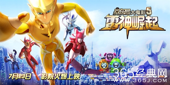 《赛尔号大电影5:雷神崛起》是上海淘米动画有限公司、北京光线影业有限公司、山南光线影业有限公司、北京爱奇艺科技有限公司、卡酷少儿卫视、广东嘉佳卡通影视有限公司联合出品的奇幻动画电影,由王章俊执导,王章俊、邓磊、何秩编剧,孙晔、王衡、胡谦、沈磊、赵路等参与配音。讲述了以雷伊为首的战神联盟,为保护宇宙中的善良精灵,与大恶人奥古斯特博士激烈交战的故事。该片于2015年7月23日在中国大陆首映。