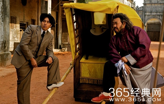片中三位男主角周润发、葛优和姜文,都各有无数个身份,从最初葛优带着老婆、汤师爷乘着马车吃火锅被姜文逮到开始,就一直在“碟中谍”。县长葛优首先冒充了汤师爷,匪徒麻子姜文冒充了县长,他们一同遭遇了周润发扮演的黄四郎。片中有一场葛优和姜文赴周润发的鸿门宴的戏,精彩到可以写进任何表演教材里,三个人各怀鬼胎,骗中有骗,话里有话,刚开始观众觉得自己是上帝视角,三个人虽然糊涂,但观众是明白的。但到了最后,观众会发现电影里的三个人明白了,自己却糊涂了。这场鸿门宴远比《盗梦空间》复杂,每个人都带着四五重骗局,还要不让对方识破自己的真实身份和想法,虽然复杂却平易近人,抓住每个观众的心。