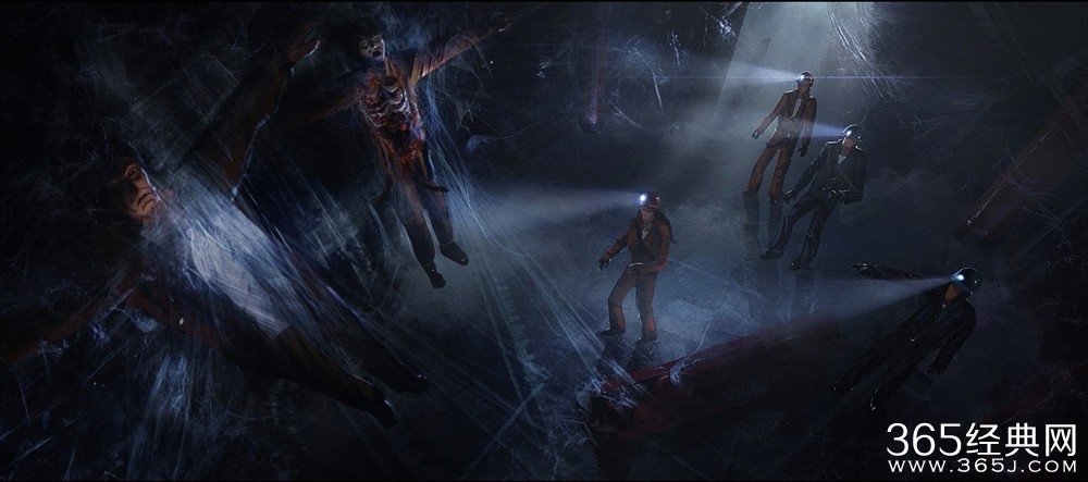 这场“蜘蛛危机”从古代延续至今,其他几张概念图中,一具被蛛网缠绕的古代僵尸摆放在现代实验室中,还有探险队员在帝陵身处发现被密密麻麻的蜘蛛“占领”的尸体,最惊悚诡异的当属几具人体被蛛网吊在空中,面部表情极端惊恐。而概念图中描绘的一个被蛛网笼罩的龙形巨棺更加吸睛,将惊悚神秘与恢弘的东方皇陵气势完美结合,巨大龙棺里暗藏怎样的危机,让人细思恐极。