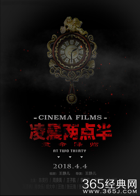 《凌晨两点半》由王静儿执导,陈美行、周庚禹、王子航、李哲羽、张敬阳、朱德丽、胡大中、陈泽帆、汪池、陈快乐、张珞琳、张云海、王思思主演,影片定于2018年4月4日全国公映。该片还原凌晨两点半的恐怖事件,每当夜深人静凌晨两点半时,就会引发一系列令人毛骨悚然的恐怖事件。
