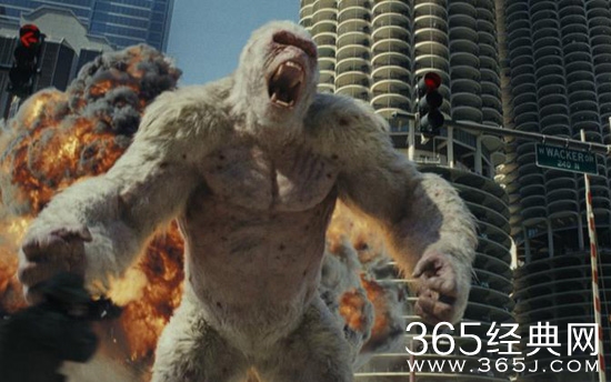 影片不惜工本打造顶级特效,作为“主角”的大猩猩乔治尤其纤毫毕现,不仅体态动作活灵活现,连皱眉、怒目等最细微的面部表情也被清晰捕捉,情感变化令观者感同身受,产生共鸣。突变后的巨兽则是体型空前、破坏力空前,巨猩行动起来就像移动的小山,在芝加哥等最繁华都市街头横冲直撞,如入无人之境,所到之处墙倒屋塌、爆炸不断,如同大战现场。其他巨兽也毫不逊色,长达九米的巨狼腾空飞天摧毁直升机,巨齿獠牙直扑屏幕把观众吓出一身冷汗,在都市中狂奔更是同类电影中罕见的创意场景。巨鳄也强势登陆,张开巨口怒吼的场面令人联想起《侏罗纪公园》等怪兽大片,惊鸿一瞥的瞬间亮相也吊足观众胃口。《狂暴:世纪浩劫》三只巨兽令人叹为观止,每个单拎出来都可以担纲一部大片,如今“一片三吃”无疑劲爆加倍。