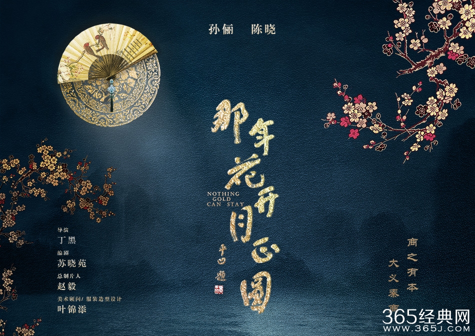 《那年花开月正圆》概念海报整体上以泾渭河山为背景,寓意着这场曾经发生在陕西泾阳安吴堡的故事即将拉开帷幕,水墨色河山又为这段故事增添了几许诗意和传奇。左上角一轮由传统牡丹纹理和金色折扇组成的圆月,扇面上一对鸟儿站在花开的枝头嬉戏,寓意着女主角周莹对“那年”家庭和爱情的追忆。月光散发着淡淡的光芒笼罩着泾渭山河,寓意深刻。“今人不见古时月,今月曾经照古人”,一百多年的时间,泾阳大地上的花谢了又开,月缺了又圆。
