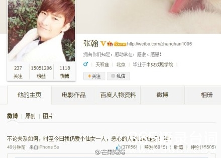 而在电视节目里天天说爱的张翰哥哥,迅速发一条“模棱两可”的微博说还爱著小仙女。现在说“不管关系如何”又是什么意思?小仙女是谁?我也可以是小仙女!李菲儿、唐艺昕也可以?
