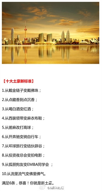 10)出门带女秘书。符合6项即为真金土豪!旧标准,你中没?