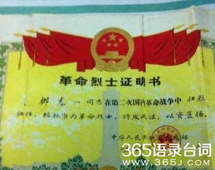 柳艳兵家里有一份《革命烈士证明》,证明上写到:柳龙一,1911年出生,1930年参加革命,生前属彭德怀部战士。1931年,第二次国内革命战争中,柳龙一在江西省袁州区慈化镇壮烈牺牲。1983年,他被国家授予“革命烈士”称号。