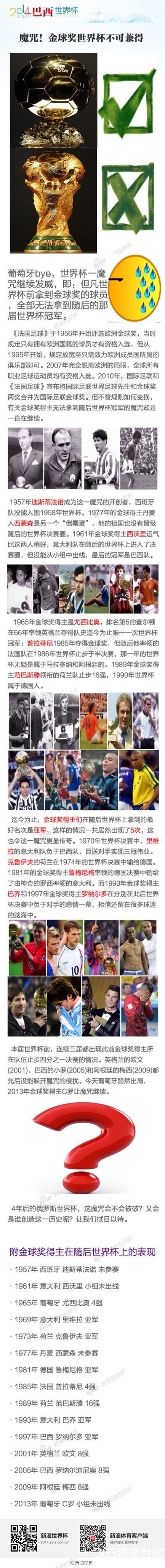 但凡世界杯前拿到金球奖的球员,全部无法拿到随后的那届世界杯冠军。 C罗看完这个,心情能好点吗?