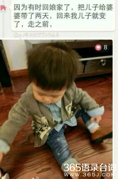网友“小小房子”把儿子给婆婆带了几天后,儿子就变成酱紫了……