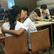 有网友传出在一家店里,两个零零后热吻的图片,旁边的两个大人无法直视,只能低头啊,对于这种逆天的行为,网友们都有什么看法呢?