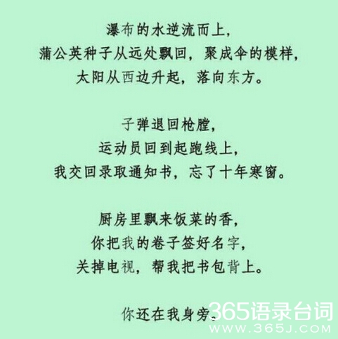 你还在我身边》就为您介绍到这里,希望大家能够喜欢。如果您喜欢这篇文章,请分享给您的好友,更多精彩不容错过。欢迎持续关注我们的后续更新,365语录台词网汇集和分享最新最热门的精彩内容。