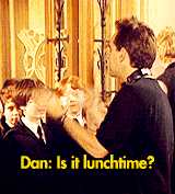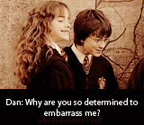 丹尼尔问她:你为什么非要让我尴尬呀?(旁边扮演罗恩的小鲁伯特笑开花了)