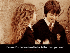 有几部里,小艾玛个头窜的已经比丹尼尔高了,她就去找他比个头。