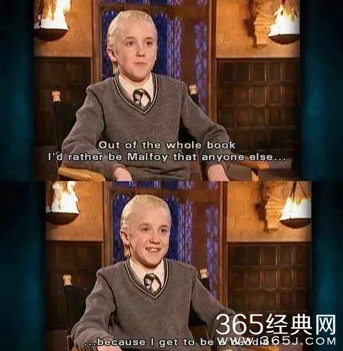 虽然这样让他很苦恼,不过私底下好性格的汤姆在小时候就说过:看完整系列书,比起别的角色,我还是最愿意扮演马尔福,因为我可以演个反派。