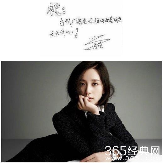 杨幂的字有些潦草,但能看得出来写地有些风格在。