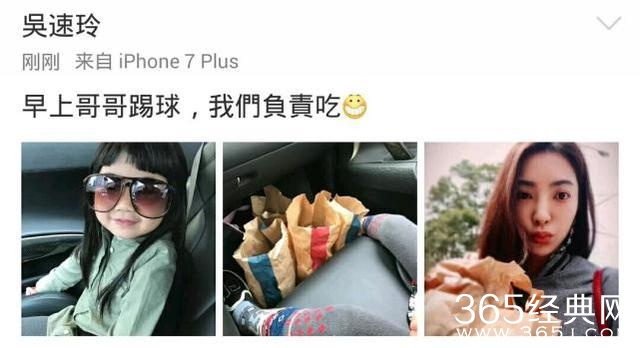 不过今天妈妈却晒出了一个不一样的姐姐!配文称:早上哥哥踢球,我们负责吃!