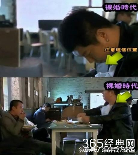 《裸婚时代》中注意土豆的餐巾纸,在前一个镜头中餐巾纸已经被拿下来了,可后面一个镜头却又老老实实的放好了。