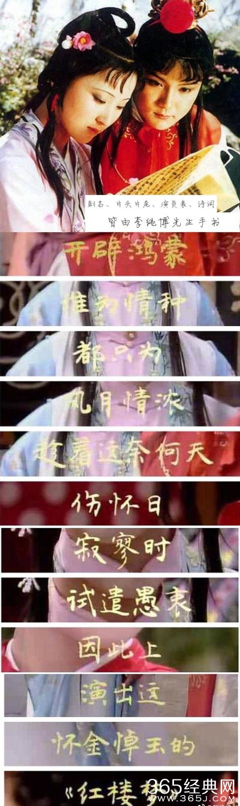 看过这部电视剧的人都知道,那个时候的电视剧人物对白没有字幕,但是诗词出现在剧中的时候有字幕。这些诗词字幕不是电脑打出来的,而是手写的!甚至包括剧名、片头片尾字幕,演员表。