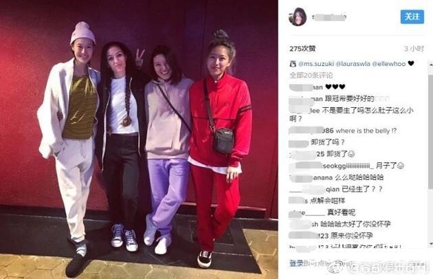 3月19日,秦舒培更新社交账号,晒和友人合影。照片中,秦舒培小腹平坦,疑似已经提前“卸货”。