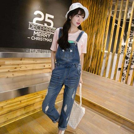 类似杨紫这样的破洞背带裤属于经典背带裤款式,属于青春减龄系的款式。