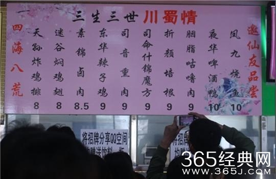 中午12时许,笔者在该校一食堂二楼看到,粉底黑字招牌上的“三生三世川蜀情”一行大字格外显眼,招牌上有鸡排、鸡翅、卤肉等10种菜品,全部以《三生三世十里桃花》中的人物角色命名。窗口前排起的长队中,不少学生拿起手机,拍下招牌朋友圈。