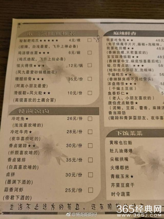 此外,武汉某高校一食堂老板因家里人都在看电视剧《三生三世十里桃花》,萌发了用里面的人物与菜名结合的方法,吸引同学的注意。这方法果然实用,菜谱出来后,吸引了不少同学前来尝试。