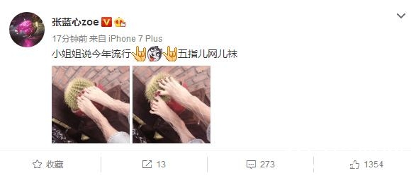娱乐圈中,明星们晒照也是各种奇葩晒法层出不穷。3月18日晚上,张蓝心微博晒出自己的五指袜,竟然脚踩仙人球,看起来可是有点心疼美人的玉脚啊。