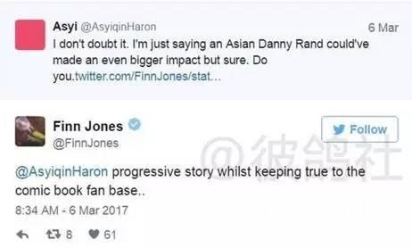 而《铁拳》主演菲恩·琼斯以“对漫画原著忠实度”回应出演这个角色时,因为和网友互怼而遭受围攻,短暂删号退出社交平台。